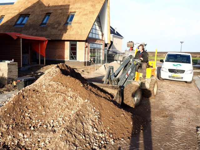 Grond- en straatwerken Zeewolde in de Polderwijk. (Kwik) Tijdens dit project is het nodige grond- en straatwerk uitgevoerd. In de zeer natte Polderwijk (hoge grondwaterstand) is het belangrijk een goed gestabiliseerd cunet aan te leggen alvorens het straatwerk uit te voeren. Als de bereikbaarheid nog aanwezig is (via het terrein van de buren bijvoorbeeld) is het meer een kwestie van “van de gelegenheid gebruik maken”, omdat het later niet meer kan. Ook het aanvoeren van de bestratingsmaterialen kan (zeker bij een bevroren ondergrond) zonder problemen uitgevoerd worden. Het project wordt vervolgd als de vorst weer uit de grond is. De aanleg van een drainagesysteem zal in de toekomst het overtollige hemelwater (stortbuien) afvoeren.